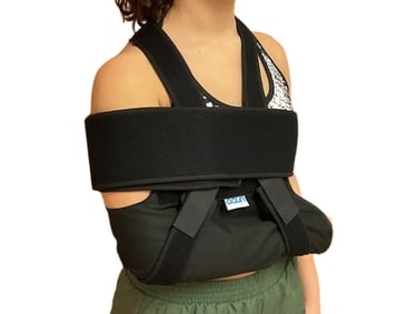 AS205 Bendaggio immobilizzatore spalla "plus": Realizzato in poliuretano accoppiato in poliammide con regolazione e chiusura in velcro. La sua particolare forma è stata studiata per immobilizzare il braccio e la spalla del paziente anche in presenza di ferite, ematomi o gonfiori dell’arto; lasciando il braccio scoperto. Ambidestro colore nero. Disponibile in sei taglie.