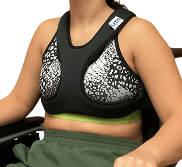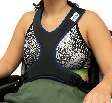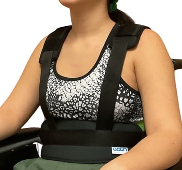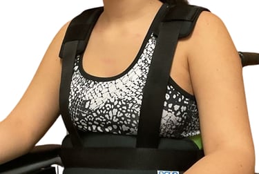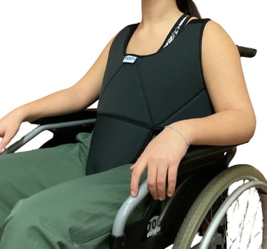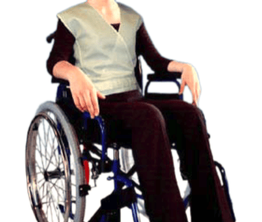 Pettorina realizzata in tessuto traspirante. Suggerita per pazienti costretti a prolungati periodi in carrozzina o su sedia comoda. Impedisce il ribaltamento in avanti, suggerendo una giusta postura ed un contenimento confortevole. Dotata di nastri per il fissaggio regolabili mediante una fibbia scorrevole in plastica che lo rendono adattabile a ogni circonferenza dell'addome e all'utilizzo su qualsiasi modello di carrozzina o comoda. La fibbia garantisce anche un “rapido sgancio” in caso di emergenza. Chiusura posteriore su pad con ganci.