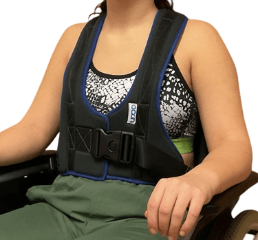 Dispositivo realizzato in tessuto traspirante e fettucce in cotone. Consente una sicura immobilizzazione grazie alla doppia fettuccia situata sulla parte inferiore e sulle spalle del gilet. Indicato per contenere e suggerire la postura del paziente.