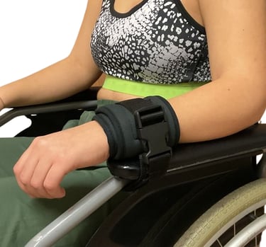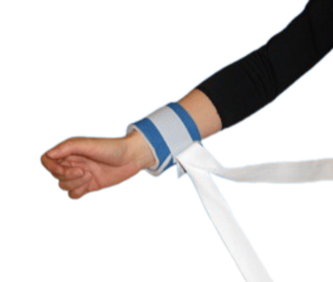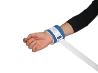 Polsino immobilizzatore in tessuto imbottito indicato per pazienti costretti a prolungati periodo in carrozzina o su sedia comoda. Dotata di nastri per il fissaggio alla struttura del bracciolo di qualsiasi modello di carrozzina. La chiusura tramite fibbia garantisce un “rapido sgancio” in caso di emergenza.