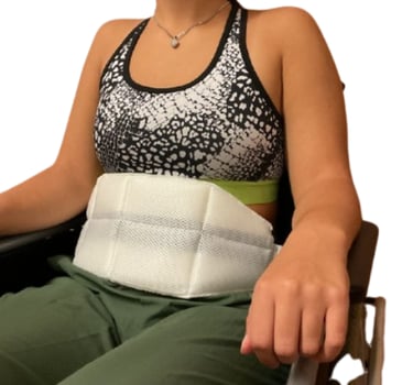 Fascia addominale in tessuto traspirante indicata per pazienti costretti a prolungati periodi in carrozzina o su comoda. Lo speciale disegno a “T” suggerisce la giusta postura del paziente evitando il ribaltamento in avanti e lo scivolamento verso il basso. Dotata di nastri per il fissaggio regolabili mediante fibbia a scatto che lo rendono adattabile alla circonferenza dell'addome e all'utilizzo su qualsiasi modello di carrozzina o comoda, garantendo anche un “rapido sgancio” in caso di emergenza . Chiusura posteriore su pad con ganci.
