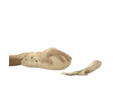 Dispositivo per l'immobilizzazione e protezione della mano. Realizzato in cotone e poliestere traspirante, imbottitura interna in vello antidecubito. Chiusura al polso con velcro, fissaggio con cinghia di sicurezza e fibbia a scatto. Indicato per evitare che il paziente possa recare danno a se o agli altri. Disponibile in colore bianco.