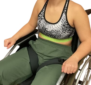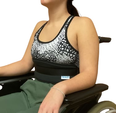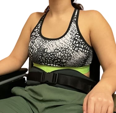 Cintura pronta all'uso che risolve in modo facile ed intuitivo problemi di instabilità causati dalla diminuzione fisica o psicologica. Consente la contenzione ed il suggerimento della giusta postura in molteplici situazioni sia da seduto che in posizione eretta. Permette l'immobilizzazione ed il contenimento, a seconda della necessità; di diverse parti del corpo. Utilizzabile su ogni modello di sedia a rotelle o poltrona, su scooter, carrozzine elettroniche.