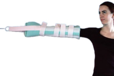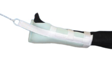 Device made of polyurethane, cotton webbin and velcro. The special internal desig that anatomically give best stability to the immobilization of the led. follows the shape of the leg. Suitable for shoulder traction.