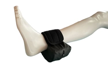 Circular section support in expanded polyurethane, coverd by a breathable sintetich fabric or a waterproof fabric. Recommended for patients with limited movement immobilized in bed for a long time. Equipped with ankle protection pad. The support prevents the formation of bedsores by lifting the heel, avoiding the compression of the heel and the ankle joints. Universal size.