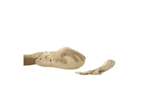 Device made of polyurethane coupled with polyamide, equipped with an plastic anatomical hook and rigid tape to assure patient to bed or wellchair. Available in two colours (black and blue).