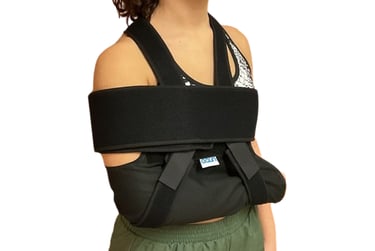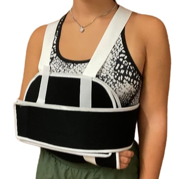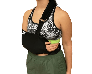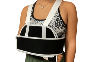 AS108 Arm sling "comfort": Made of lightweight fabric, equipped with a polyurethane strap coupled to polyamide for better comfort, equipped with a thumb support that prevents the wrist from falling. Adjustable Velcro closure . Ambidextrous; available in a single colour (black). Available in six sizes.