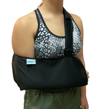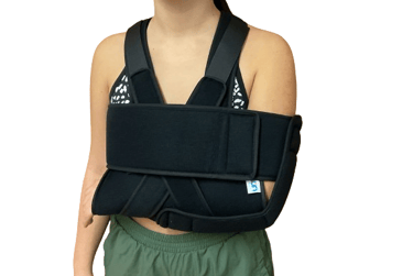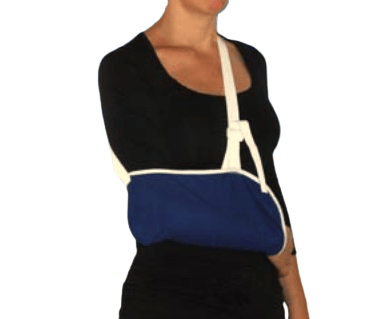 AS107 Open Arm sling: Device with an open “pocket” for a better fit, made of synthetic fabric. Closure by strap and self-locking buckle. Ambidextrous; available in two colours (blue and black). Available in three sizes.