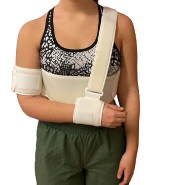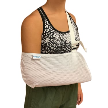 AS109 Perforated arm sling: Device made of perforated synthetic fabric to ensure a better breathability. Equipped with a thumb support that prevents the wrist from falling. Closure by strap and self-locking buckle. Ambidextrous; available in a single colour (white). Available in four sizes.