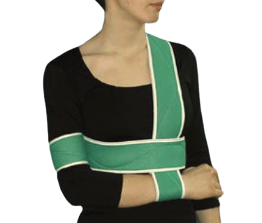 AS204 Bandage shoulder immobilizer: Device consisting of an elasticized cotton support and velcro adjustable closure bands made of polyurethane coupled to polyamide. Ambidextrous.